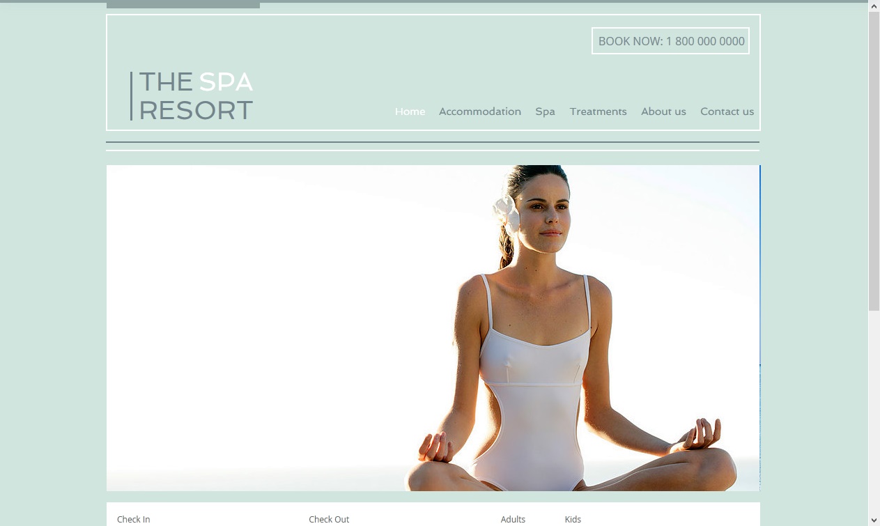 Express the tranquil atmosphere of your spa or resort with the cool color scheme and subtle design of this free template. Create a photo gallery of treatments and add text to advertise your rates, promotions, and packages. Start editing to reach new customers!