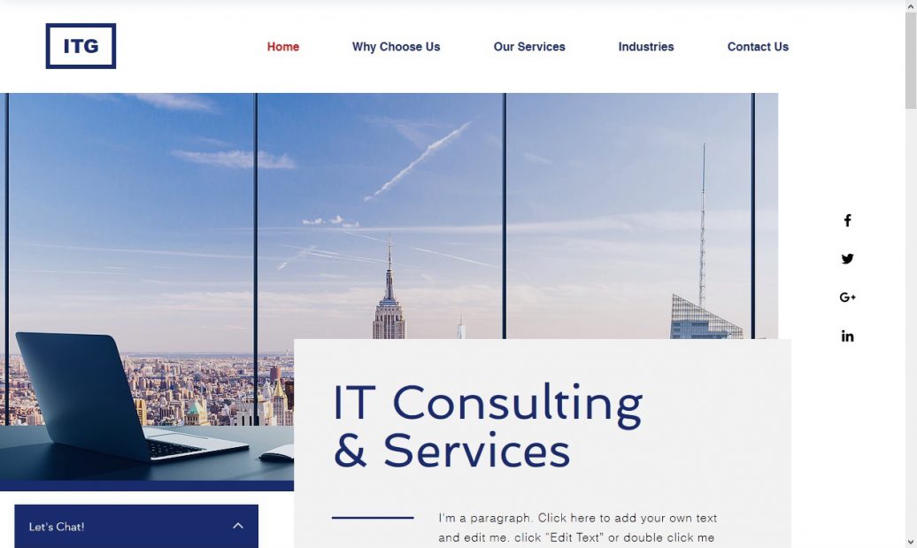 Communicate the professional, cutting edge character of your IT company with this bold template. Showcase the various services you offer, the industries you work in, and the unique approach your business has that gives you an edge on your competition. Upload photos of your offices, and add your own logo to make your brand stand out from the crowd.