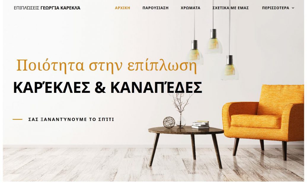 Το template αυτό είναι ιδανικό για ταπετσαριστές, κατασκευαστές επίπλων ή αναστηλωτές. Αφού καθοδηγηθείτε στη δημιουργία ενός ελκυστικού site, θα μπορείτε να παρουσιάσετε τη δουλειά σας, να μοιραστείτε την ιστορία της επιχείρησής σας και να επιτρέψετε στους επισκέπτες σας να παραγγείλουν online. Απλά προσθέστε τα προϊόντα και τις περιγραφές τους και είστε έτοιμοι.