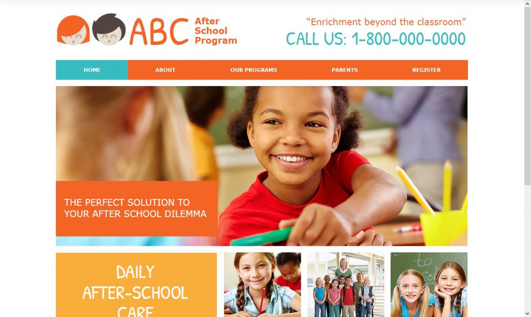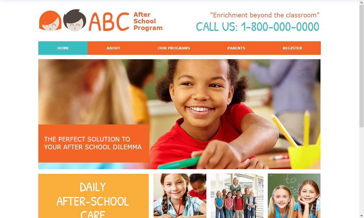 Bright colors and fun fonts make this kid-friendly template perfect for your daycare or afterschool program. Edit the text to tell parents about your programs, philosophy, and qualifications. Upload photos and customize the design to create a website that’s truly your own.