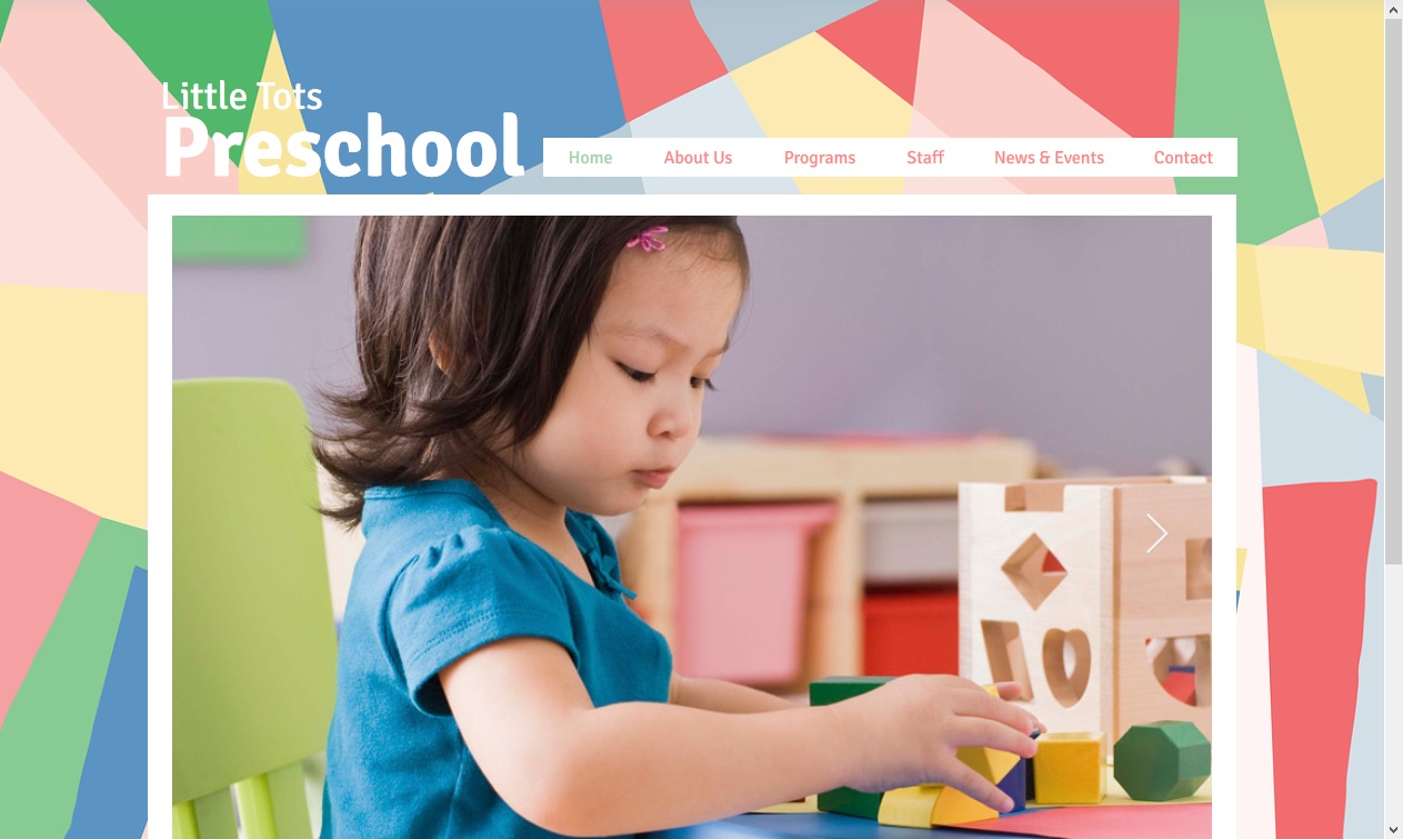 Perfect for nurseries, daycares, and preschools, the pastel colors and geometric background of this template create a warm and friendly vibe. Customize the text and upload your own images to introduce your programs, staff, and philosophy. Start editing to craft a playful website that captures the spirit of your business!