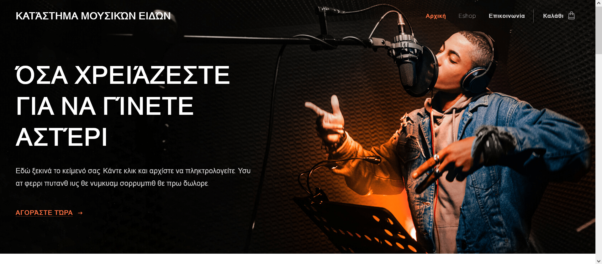 Χρησιμοποιήστε αυτό το template ώστε να δείξετε στους λάτρεις της μουσικής τι έχετε να προσφέρετε. Δημιουργήστε κατηγορίες, ταξινομήστε τα προϊόντα, επιλέξτε τα best-selling όργανα, και σφήστε τις προσφορές σας να τραγουδήσουν.