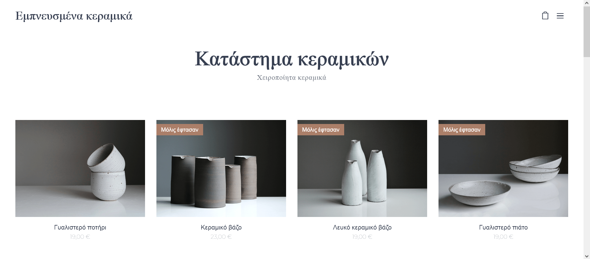 Τα επαγγελματικά σχεδιασμένα templates της Webnode περιλαμβάνουν έτοιμα δείγματα προϊόντων καθώς και όλες τις απαραίτητες σελίδες.