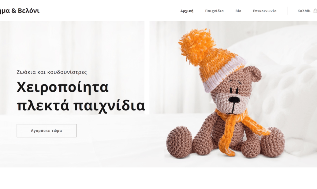Πάρτε το γάντζο σας! Τώρα μπορείτε να έχετε το τέλειο e-shop για τα παιχνίδια που φτιάχνετε. Χαριτωμένος σχεδιασμός, εύχρηστη σελιδοποίηση προϊόντων, εύκολη διαδικασία αγοράς – όλα αυτά εγγυώνται να βοηθήσουν τα παιχνίδια σας να φτάσουν στα χεράκια των πελατών σας γρήγορα και εύκολα.